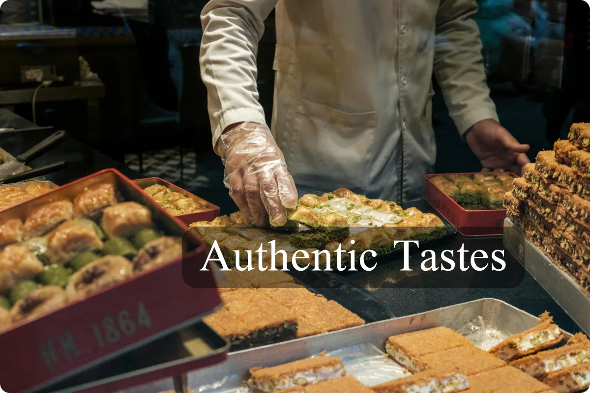Handcrafted Quality: Our signature Baklava and Knafeh are made fresh daily using premium pistachios, almonds, and pure butter.